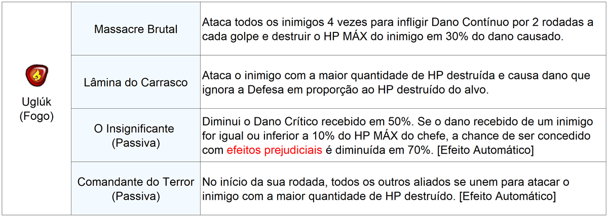 ※ Os detalhes das habilidades do chefe da masmorra de evento, Uglúk, foram alterados em relação aos detalhes apresentados na Nota dos Desenvolvedores. Agradecemos a sua compreensão.
