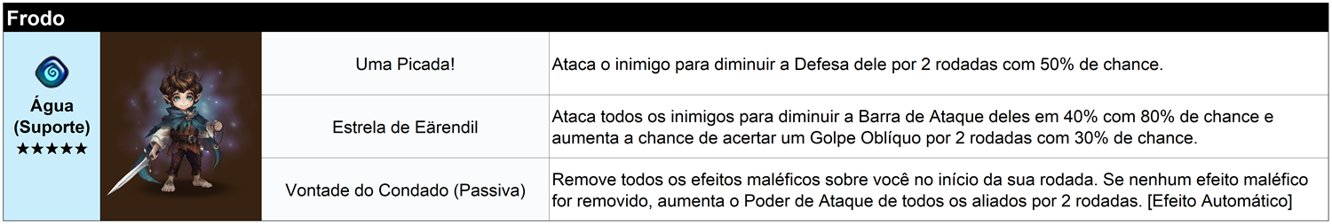 * O Frodo de Água, que pode ser obtido em um evento de collab, não será evocado.
