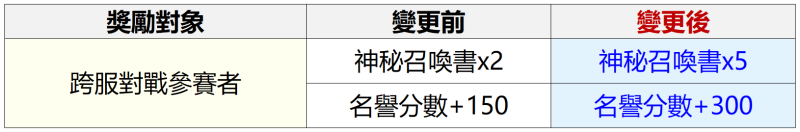 ▶ [競技場跨服對戰]相關改版內容如下 * 競技場跨服對戰改版內容將自11月24日起的戰鬥開始套用。