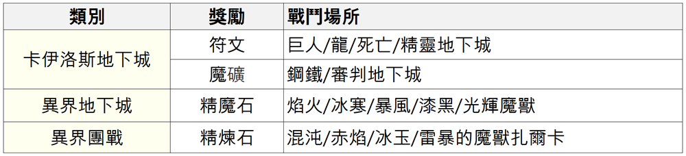 : 次元地下城階段5中,將不再掉落6星稀有級古代符文,6星傳說級古代符文的掉落機率提升至原本的3倍以上。並大幅提升傳說級古代精魔石及古代精煉石的掉落機率。