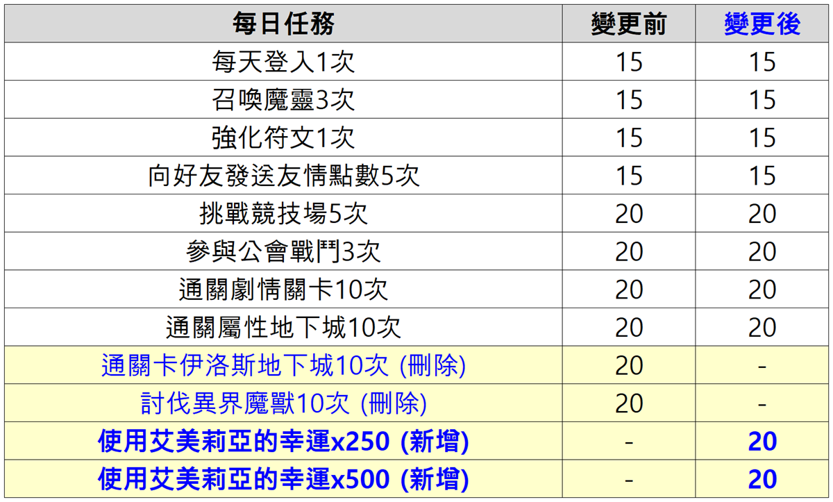 - 每日任務已透過v9.0.0版本更新進行全面改版。
