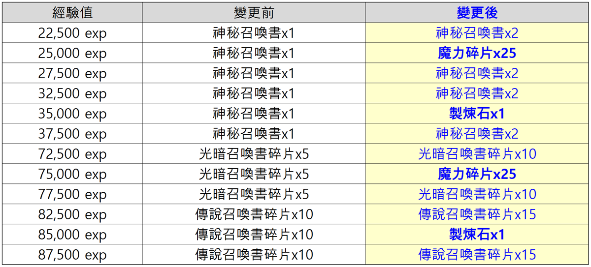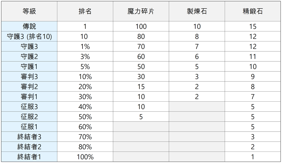 - 提升透過據點戰獲得的經驗值獎勵部分區間,並新增全新道具 「魔力碎片」 及 「製煉石」 至獎勵列表。