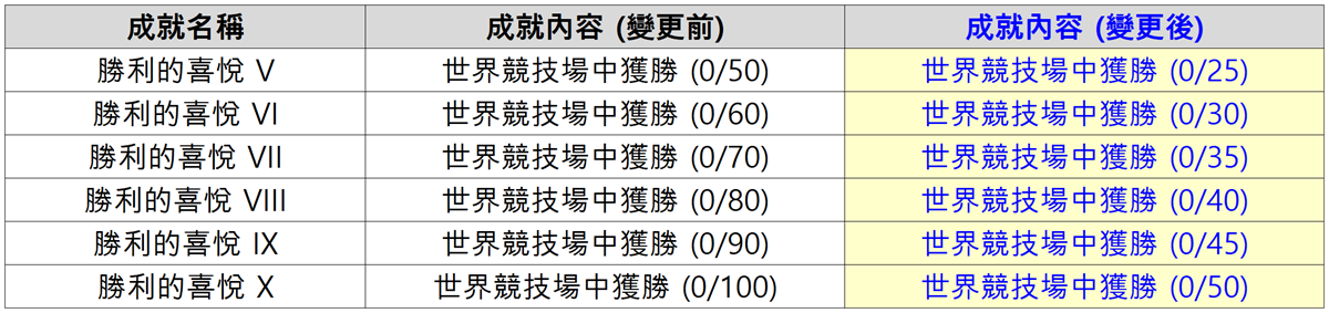 ※ 已於更新前完成相關成就時,將於11月13日 11:00起依序補發提升後的差額獎勵。