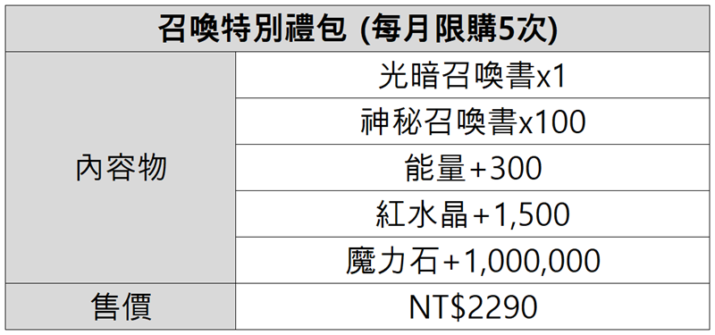 ▶ [商店 > 限定商品 > 特別禮包] 新增期間限定商品"召喚特別禮包"