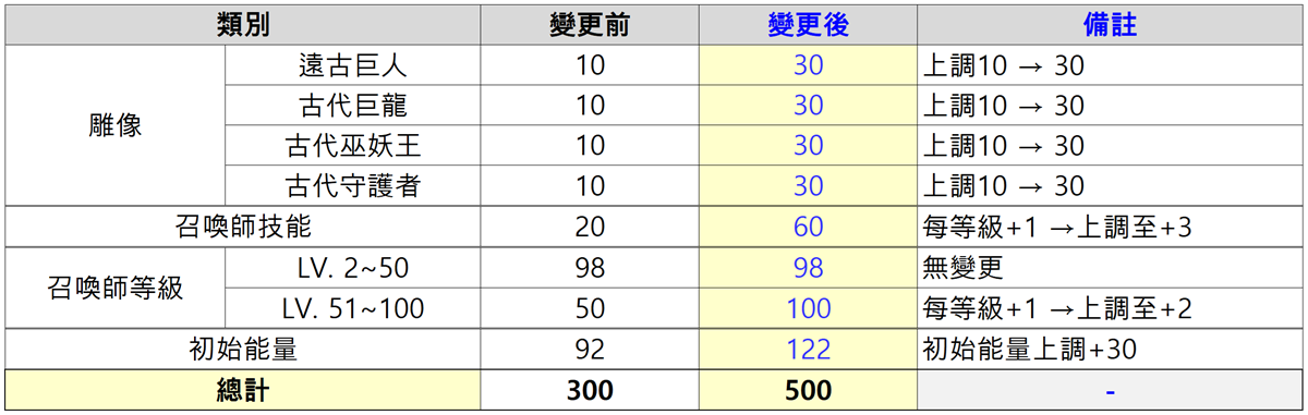 - 次元黑洞能量的持有量上限由原先的100 → 1,000。