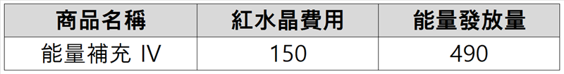- 於[商店] > [能量]補充商品中,新增以下商品: