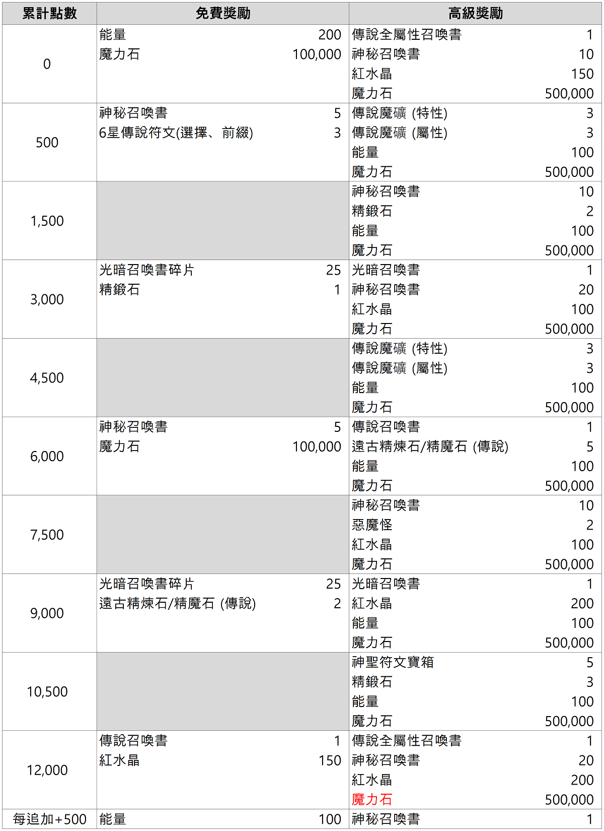 - 可依照當天消耗的「艾美莉亞的幸運」能量獲得通行證點數,累計點數達指定區間後,即可立即領取相應階段獎勵。